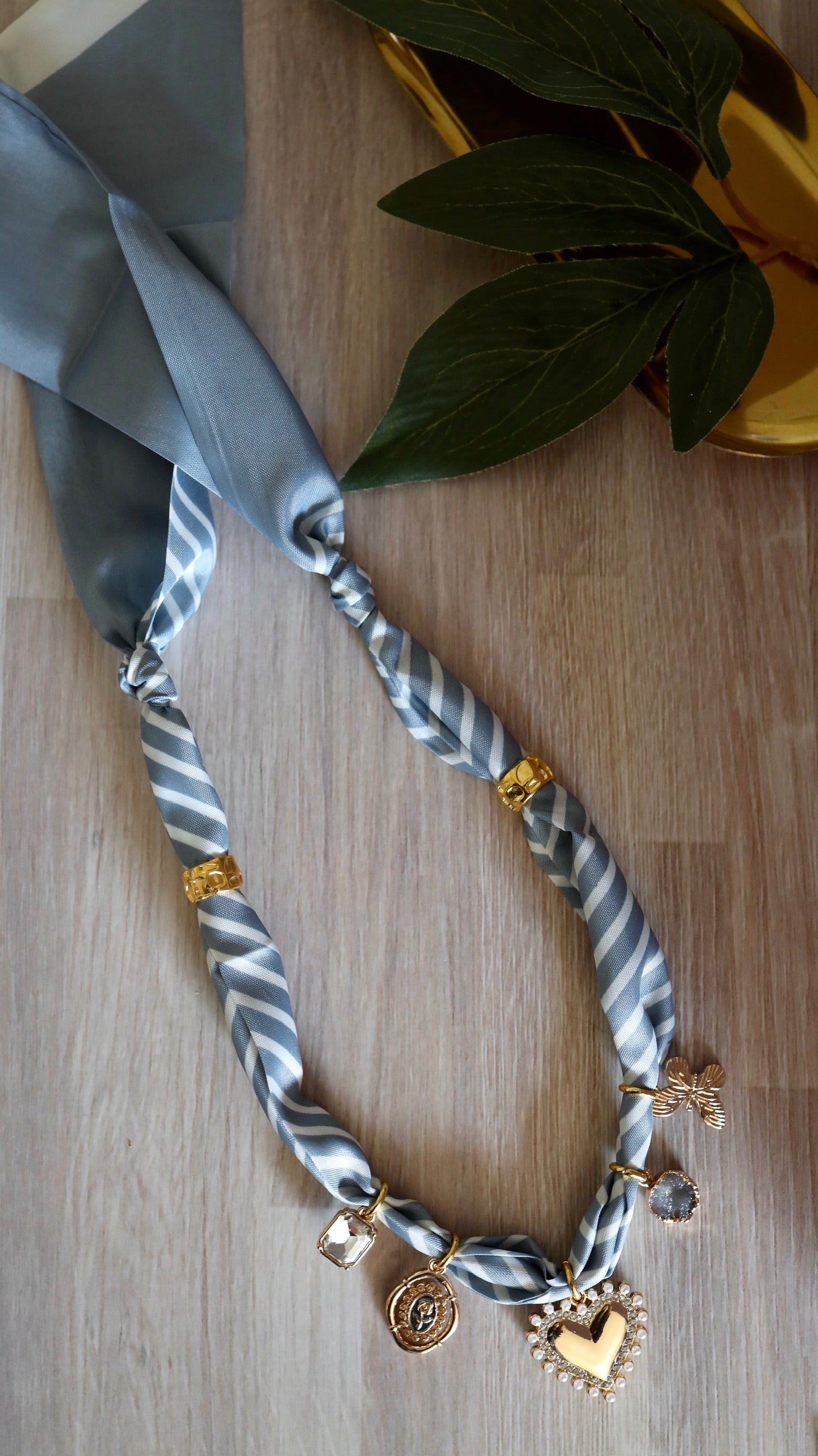 The simulated silk charm necklace brings subtle shine and softness to your accessories. This thin, delicate cord has a gentle sheen that is giving luxe. Lightweight and super breathable, it’s made for simple elevated styling. Handcrafted with care, and 100% unique.