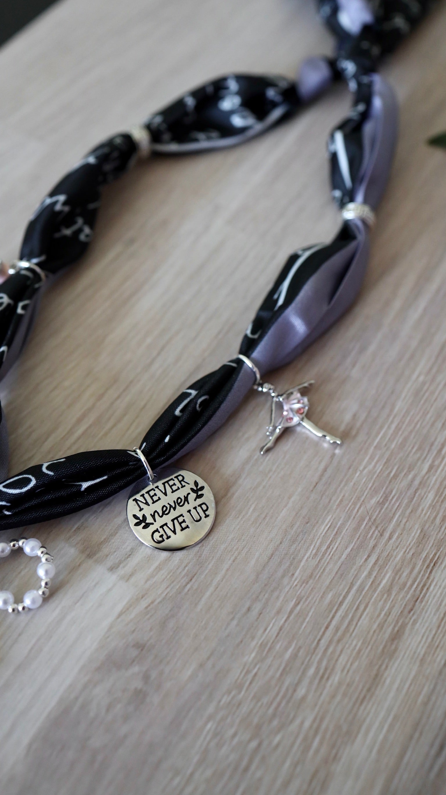 The simulated silk charm necklace brings subtle shine and softness to your accessories. This thin, delicate cord has a gentle sheen that is giving luxe. Lightweight and super breathable, it’s made for simple elevated styling. Handcrafted with care, and 100% unique.